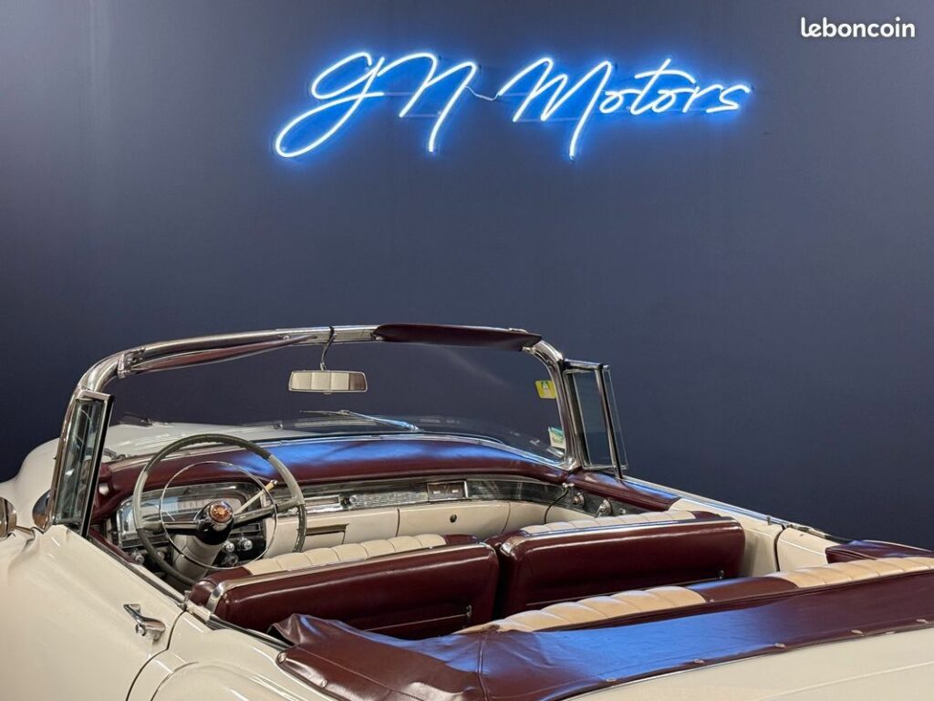 Une magnifique Cadillac COUPE DE VILLE cabriolet 1955 du 01/01/1955 avec un moteur de 1000km / 58 000km affiché au compteur.